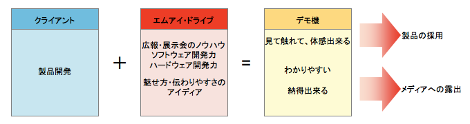 エムアイ・ドライブによるデモ機(演示具)の製作実績紹介です。展示会の集客ツール、営業活動のアイテムとしてご検討ください。